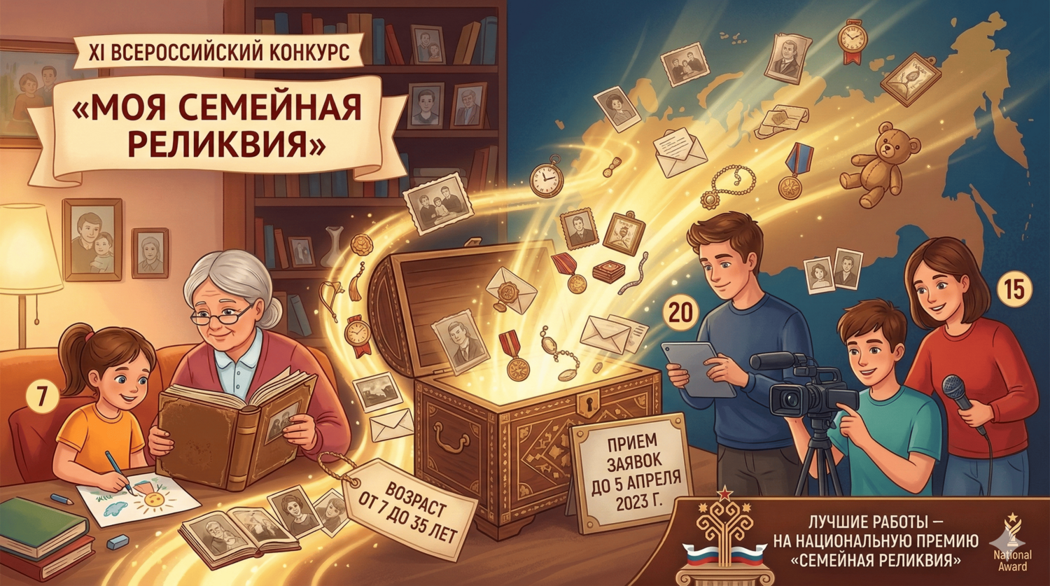 15 января 2023 года стартовал XI Всероссийский конкурс творческих работ школьников, студентов и молодёжи «Моя семейная реликвия», проводимый в рамках форума «Крепка семья – сильна Россия». Конкурс проводится в заочной форме для всех регионов России и зарубежных стран. Возраст участников от 7 до 35 лет. Последний срок подачи конкурсных работ 5 апреля 2023 г. Рассмотрение работ региональных финалистов будет проходить в мае-июне 2023 г. Лучшие работы финалистов будут номинированы на Национальную премию «Семейная реликвия».