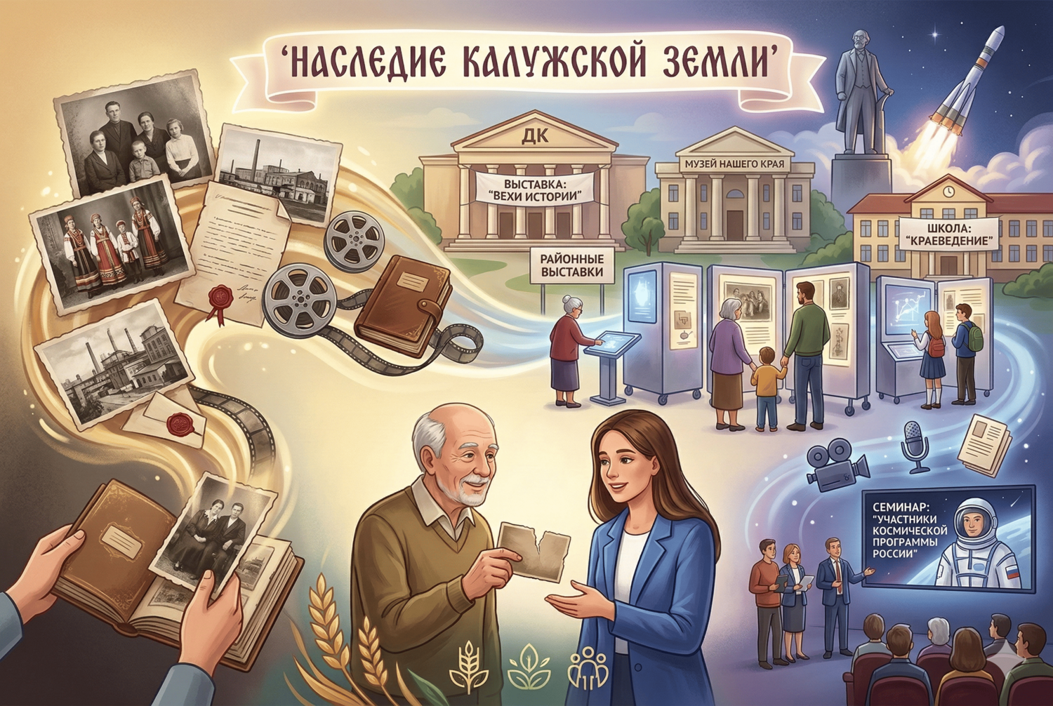 Посвящен сохранению историко-культурного наследия Калужской области. Проект организовывает выставки по различным историко-культурным тематикам. Экспозиции представлены в различных местах, включая дома культуры, музеи и школы в разных районах Калужской области. Организация семинаров и видеоматериалов с участниками космической программы России. Проект привлекает граждан, организации и учреждения внести свой вклад в сохранение исторической памяти региона, предоставив фотографии, документы и видеозаписи из семейных архивов.